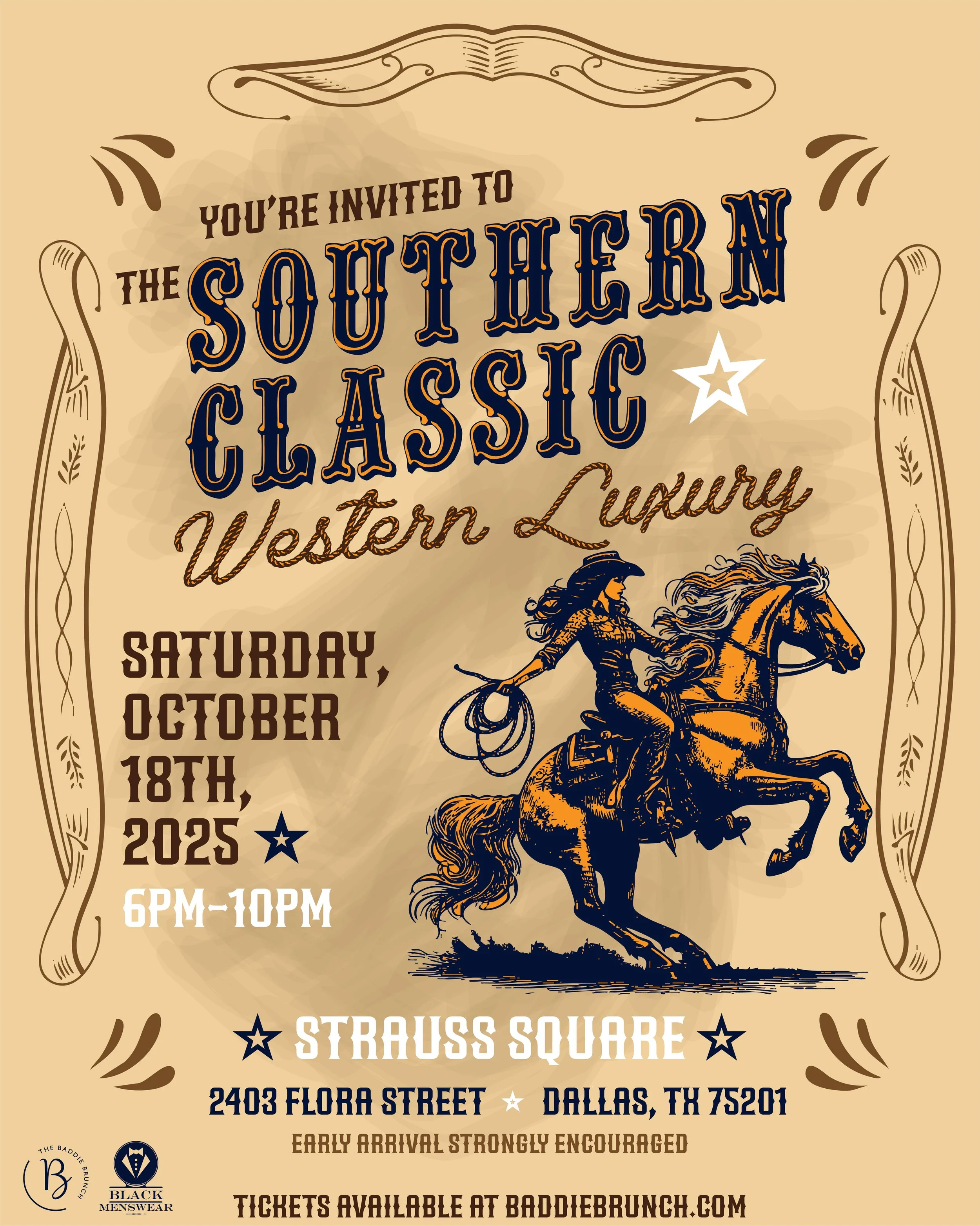 The Baddie Brunch and Black Menswear proudly present The Southern Classic: Western Luxe—where Black excellence meets western sophistication in the heart of Dallas, TX.
